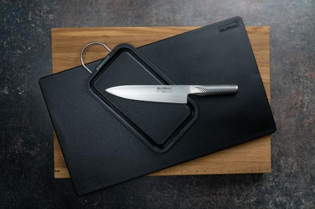 Træskærebrædder er både praktiske og skånsomme mod kniven. Globals skærebrædder af træ er lavet af eg, som er et fibertæt træ, som passer perfekt som underlag. Fordelen ved træ frem for plastic er, at skærebrættet holder betydeligt længere. Dels tåler det knivene bedre. Dels kan det slibes ned, når overfladen er blevet slidt. Ulempen er, at materialet ikke er sterilt. Det betyder, at du skal være omhyggelig med at vaske og tørre skærebrættet for at undgå bakteriedannelse. Du skal måske også oliere brættet fra tid til anden, så træet ikke sprækker.