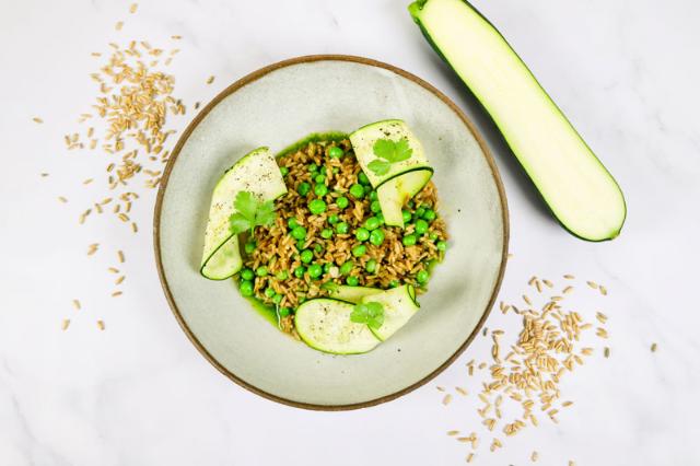 Har du hørt om nøgen havre? Det er en gammel, ubehandlet havresort, som oprindeligt kommer fra Asien. Nøgen havre indeholder mere energi end almindelig havre og har desuden en fyldigere smag. Her serverer Filip havren i en cremet risotto med zucchini, grønne ærter og urter.