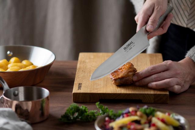 Pas på dine knive og vælg en overflade, der skåner æggen, som f.eks. sukkerrør eller træ. Hvorfor ikke et skærebræt i eg fra Global?