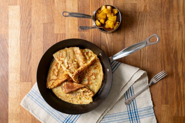 Gør som Gustav og giv dine pandekager et twist med flamberet ananas. I denne opskrift bruger han mørk rom, som giver både friskhed og en let sødme – en nem måde at peppe en klassiker op på!