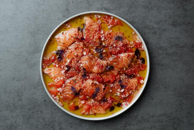 Laksesashimi er perfekt at servere som forret, men også som en luksuriøs ret på buffetbordet. For at få succes med Louises opskrift er det vigtigt at tænke på detaljerne. Vælg en rigtig god risvineddike, en lidt græsagtig olivenolie og krydr med en generøs mængde nykværnet rosépeber – så er du hjemme.