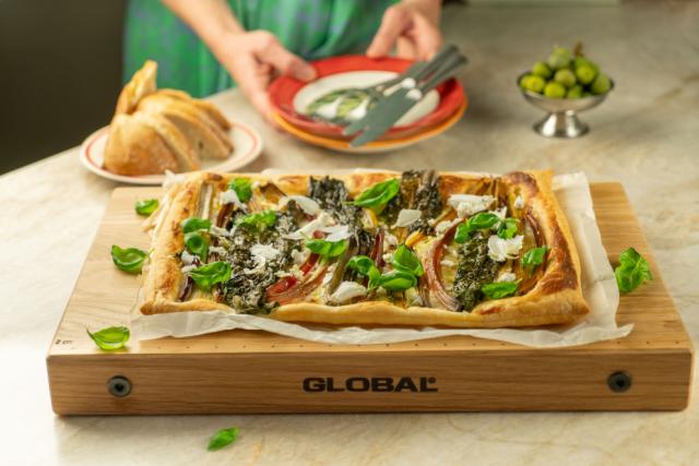 Frisk mørdej toppet med citroncreme, bladbeder i forskellige farver, gedeost i skiver og basilikumblade - hvor lækkert lyder det ikke? Følg Louises opskrift eller brug grøntsagerne du har derhjemme i køleskabet. Det er lige så godt at bruge asparges, porrer, tomater, kål eller broccolini. Her har vi en ægte "man bruger hvad man har" opskrift.