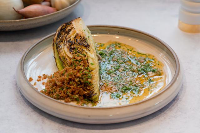 Prøv gerne at lave en vegetarisk ret, hvor kålen får lov at være stjernen på tallerkenen. Thomas Sjögren serverer sin kål sammen med hvidløgsstegt panko og en vinaigrette lavet af brunet smør.
