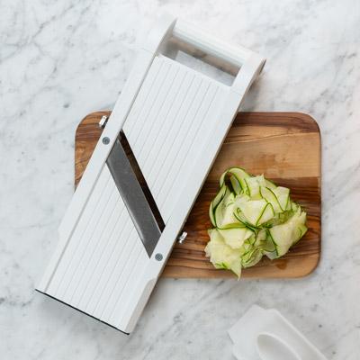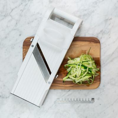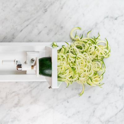 Med en grøntsagsstrimler fra Benriner udskærer du hurtigt og enkelt zucchinien til spaghetti. Brug den i rå salater, eller kog den et par minutter, og erstat den almindelige pasta.