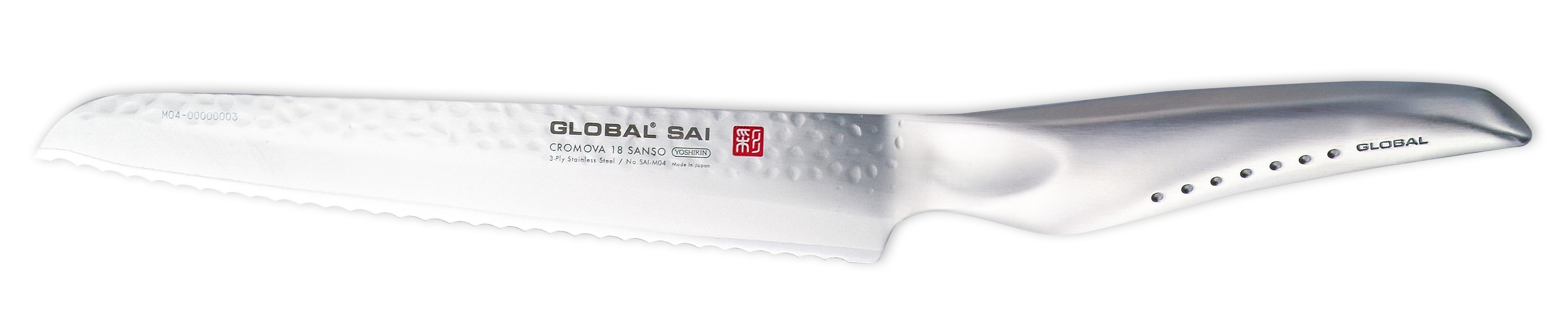 Global Sai er en videreudvikling af Globals klassiske knivserie. I stedet for et lag stål består Sai-knivene af tre lag stål. Kernen er lavet af Globals egen stålblanding Cromova 18, mens de to ydre lag og skaftet er lavet af et blødere stål. Denne konstruktion giver knivbladet en rustbestandig overflade i kombination med en ekstremt skarp æg. Svejsningen mellem bladet og skaftet er også ekstra stærk, eftersom de ydre lag og skaftet er af samme ståltype.