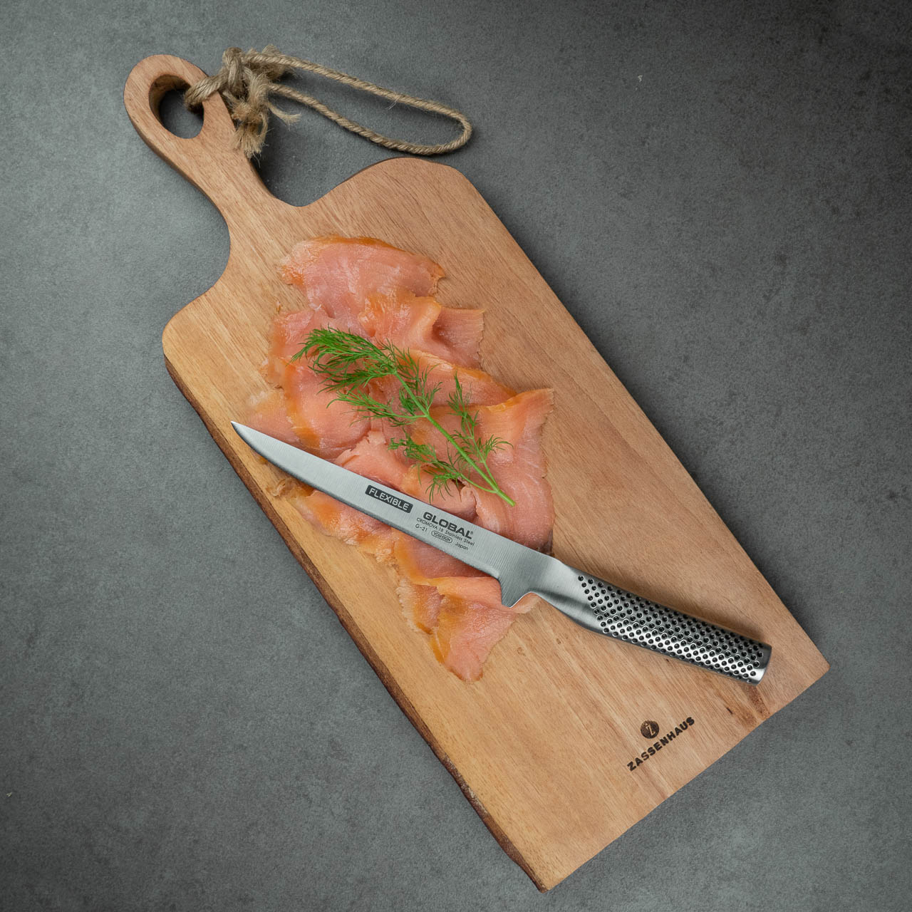 Vil du have mere at vide om filetkniven? I Globals knivguide viser Globals ambassadør Rebecca Siri, hvordan du bruger kniven på den rigtige måde, og hun gennemgår, hvilke råvarer den egner sig til.