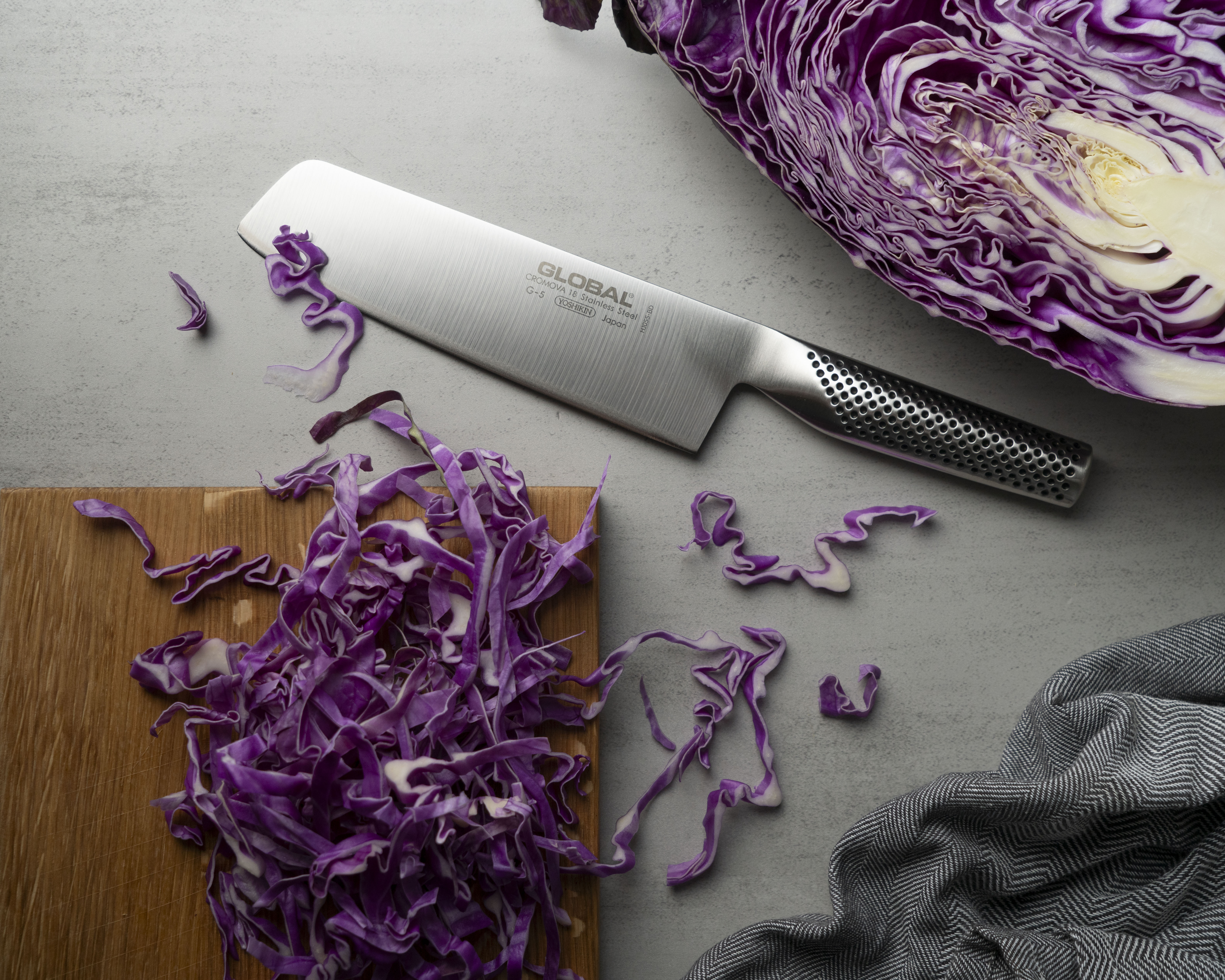Vil du vide mere om grøntsagskniven? I Globals knivguide viser Globals ambassadør Rebecca Siri, hvordan du bruger kniven på den rigtige måde, og hun gennemgår, hvilke råvarer den egner sig til.