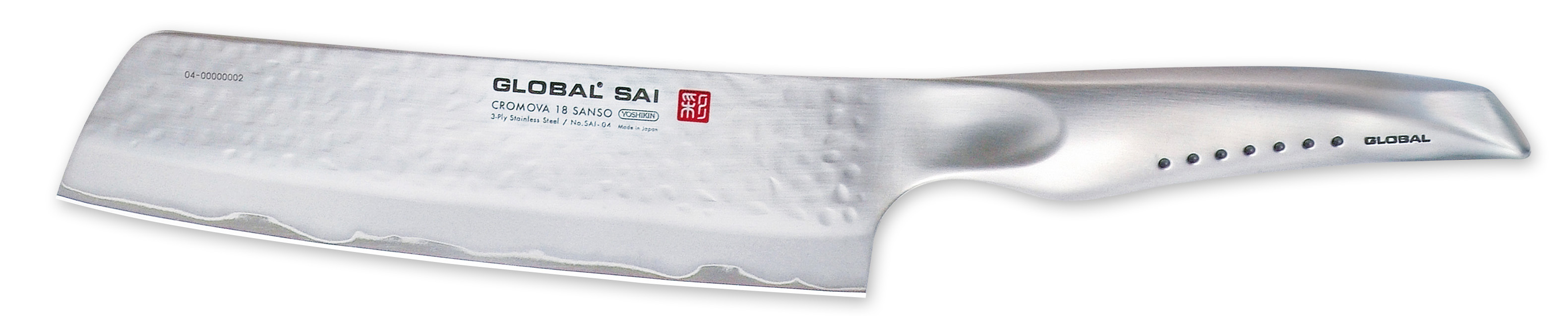 Global Sai er en videreudvikling af Globals klassiske knivserie. I stedet for et lag stål består Sai-knivene af tre lag stål. Kernen er lavet af Globals egen stålblanding Cromova 18, mens de to ydre lag og skaftet er lavet af et blødere stål. Denne konstruktion giver knivbladet en rustbestandig overflade i kombination med en ekstremt skarp æg. Svejsningen mellem bladet og skaftet er også ekstra stærk, eftersom de ydre lag og skaftet er af samme ståltype.