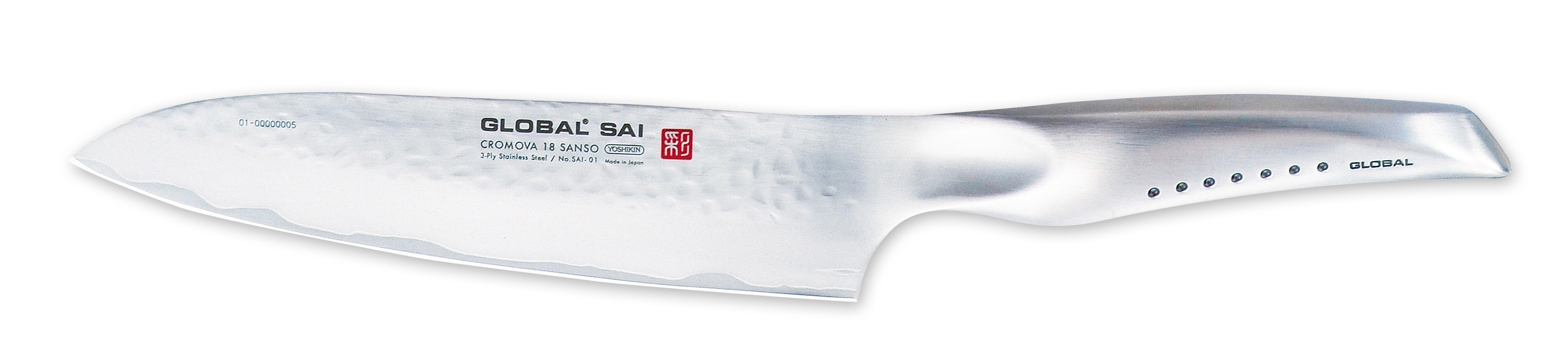 Global Sai er en videreudvikling af Globals klassiske knivserie. I stedet for et lag stål består Sai-knivene af tre lag stål. Kernen er lavet af Globals egen stålblanding Cromova 18, mens de to ydre lag og skaftet er lavet af et blødere stål. Denne konstruktion giver knivbladet en rustbestandig overflade i kombination med en ekstremt skarp æg. Svejsningen mellem bladet og skaftet er også ekstra stærk, eftersom de ydre lag og skaftet er af samme ståltype.