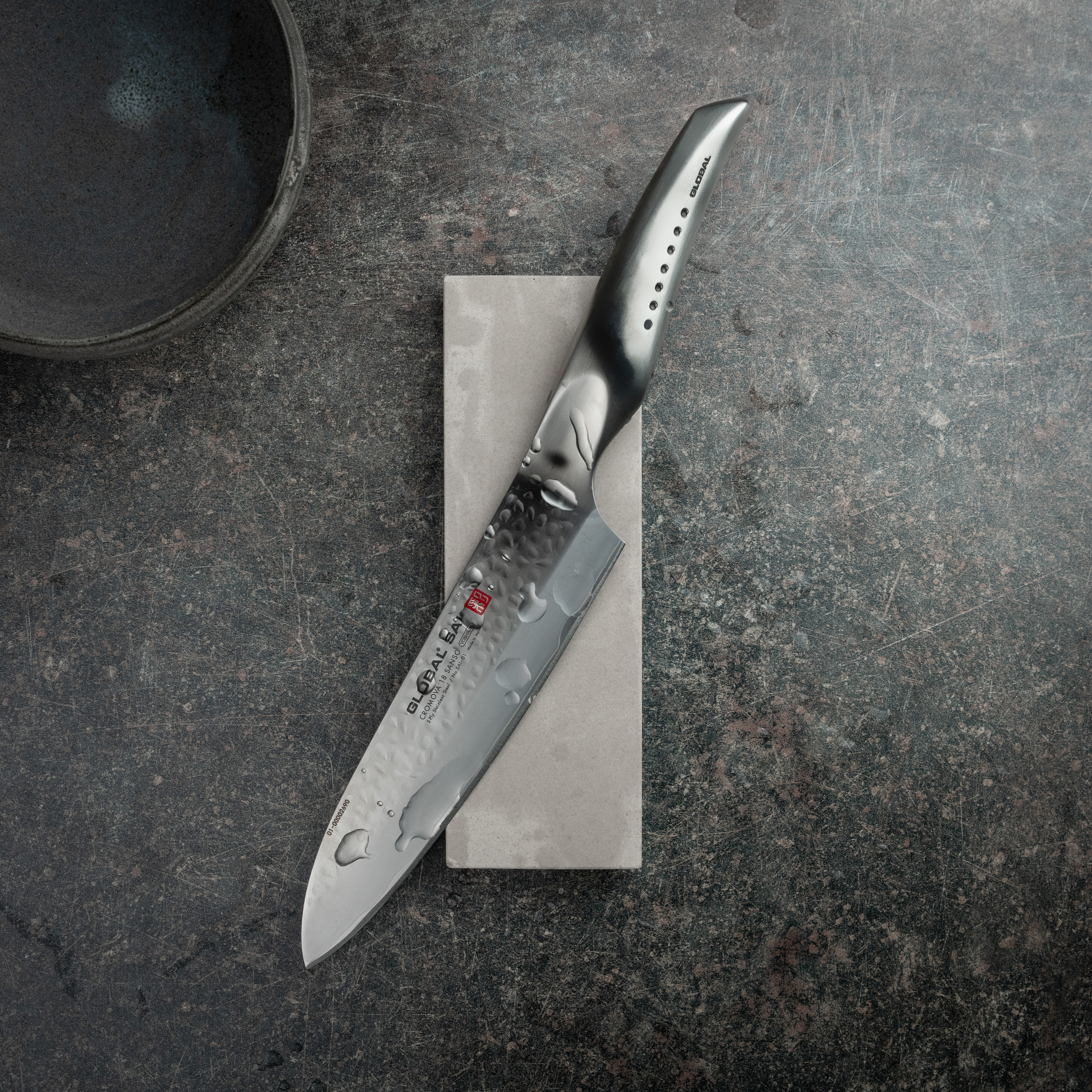 En fabriksny Globalkniv er ekstremt skarp. Præcis så skarp, som du ønsker, at en køkkenkniv skal være. Men for at din kniv kan fortsætte med at præstere på samme niveau, er der nogle ting, du skal være opmærksom på.
