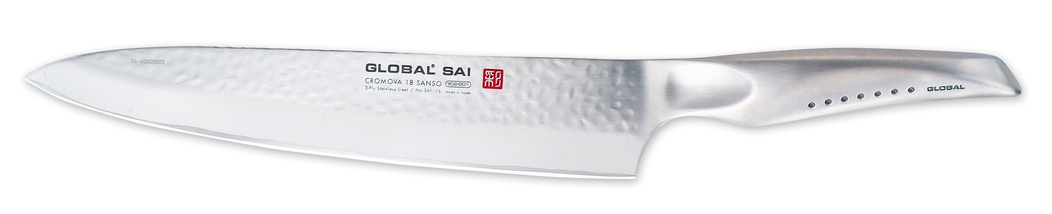Global Sai er en videreudvikling af Globals klassiske knivserie. I stedet for et lag stål består Sai-knivene af tre lag stål. Kernen er lavet af Globals egen stålblanding Cromova 18, mens de to ydre lag og skaftet er lavet af et blødere stål. Denne konstruktion giver knivbladet en rustbestandig overflade i kombination med en ekstremt skarp æg. Svejsningen mellem bladet og skaftet er også ekstra stærk, eftersom de ydre lag og skaftet er af samme ståltype.