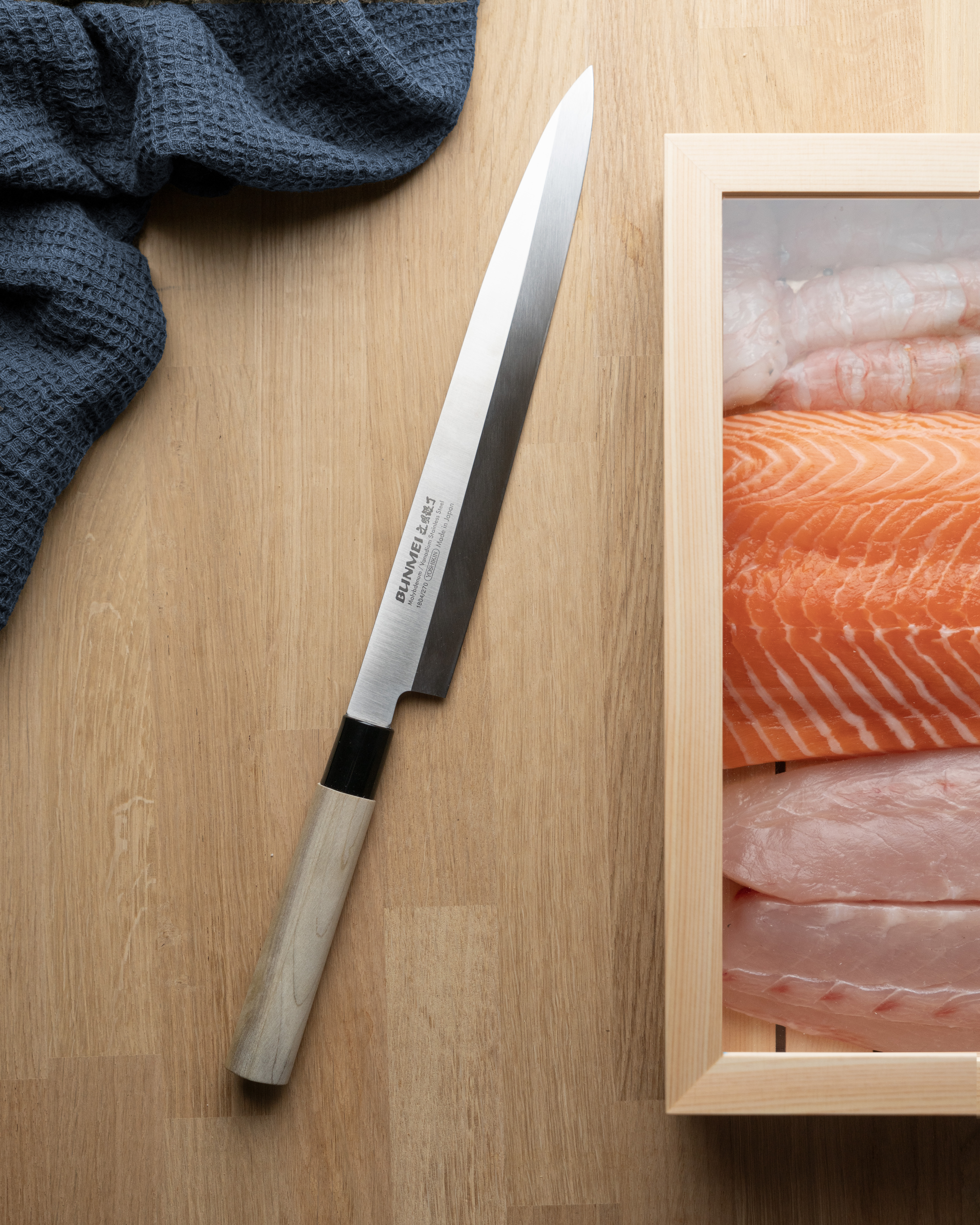 Bunmei fremstiller moderne japanske kokkeknive – med et klassisk snit. Virksomheden specialiserer sig i traditionelle modeller og har mange knive med enkeltslebet klinge. De produceres på den ikoniske knivfabrik Yoshikin, som også står bag Globalknive. Bunmei bruger det samme slidstærke stål, men har et mere japansk udtryk. Ud over den særlige klingeform skiller knivene sig ud med deres flotte, lyse håndtag lavet af japansk magnolia.