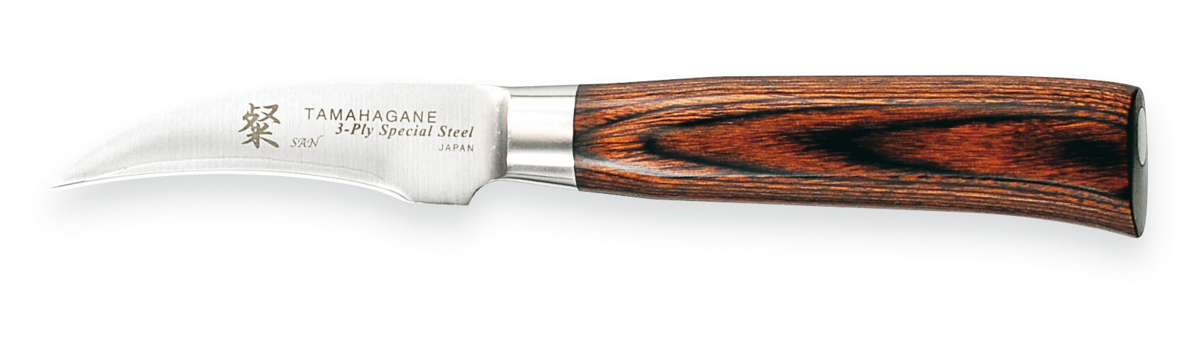 Tamahagane San er en knivserie med blad i tre lags stål. Knivbladet er opbygget af en kombination af hårdt og blødt stål, præcis som et traditionelt samuraisværd. Kernen består af VG5-stål. Stålsorten indeholder en høj andel kulstof og er meget hård, hvilket gør, at æggen kan slibes sylespids. De to yderste lag består af et blødere, mere rustbestandigt stål. Denne opbygning giver knivene en fantastisk æg i kombination med en ekstrem styrke og rustbestandighed. Hårdhedsgraden er 58-59 HRC.