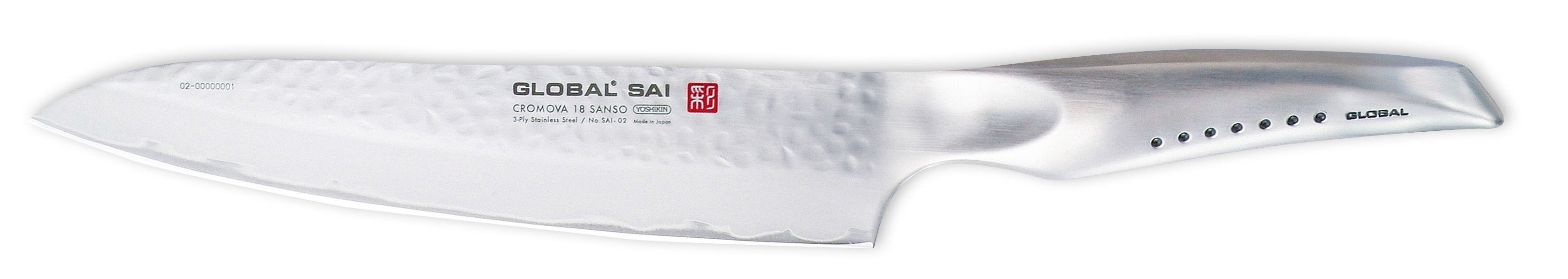 Global Sai er en videreudvikling af Globals klassiske knivserie. I stedet for et lag stål består Sai-knivene af tre lag stål. Kernen er lavet af Globals egen stålblanding Cromova 18, mens de to ydre lag og skaftet er lavet af et blødere stål. Denne konstruktion giver knivbladet en rustbestandig overflade i kombination med en ekstremt skarp æg. Svejsningen mellem bladet og skaftet er også ekstra stærk, eftersom de ydre lag og skaftet er af samme ståltype.