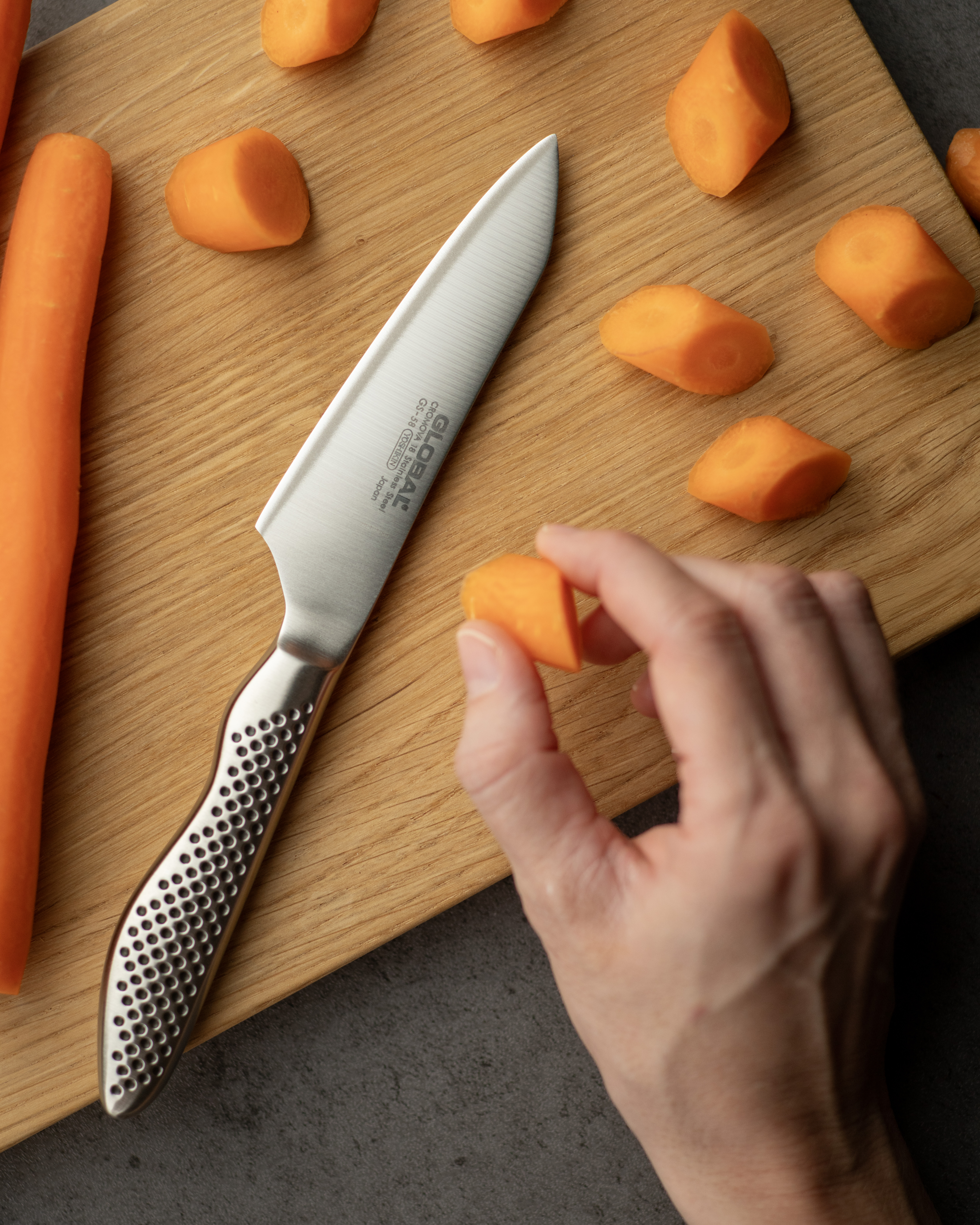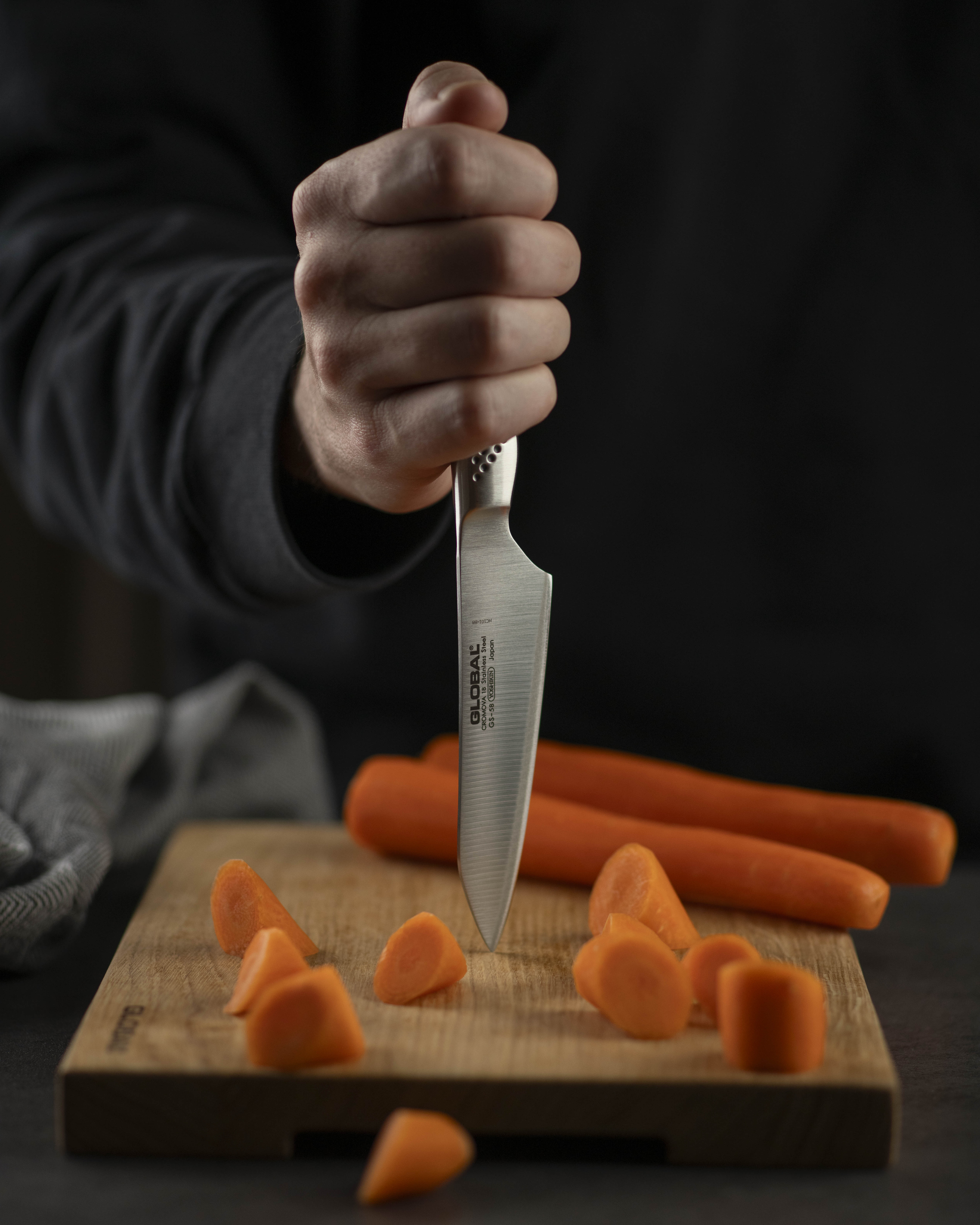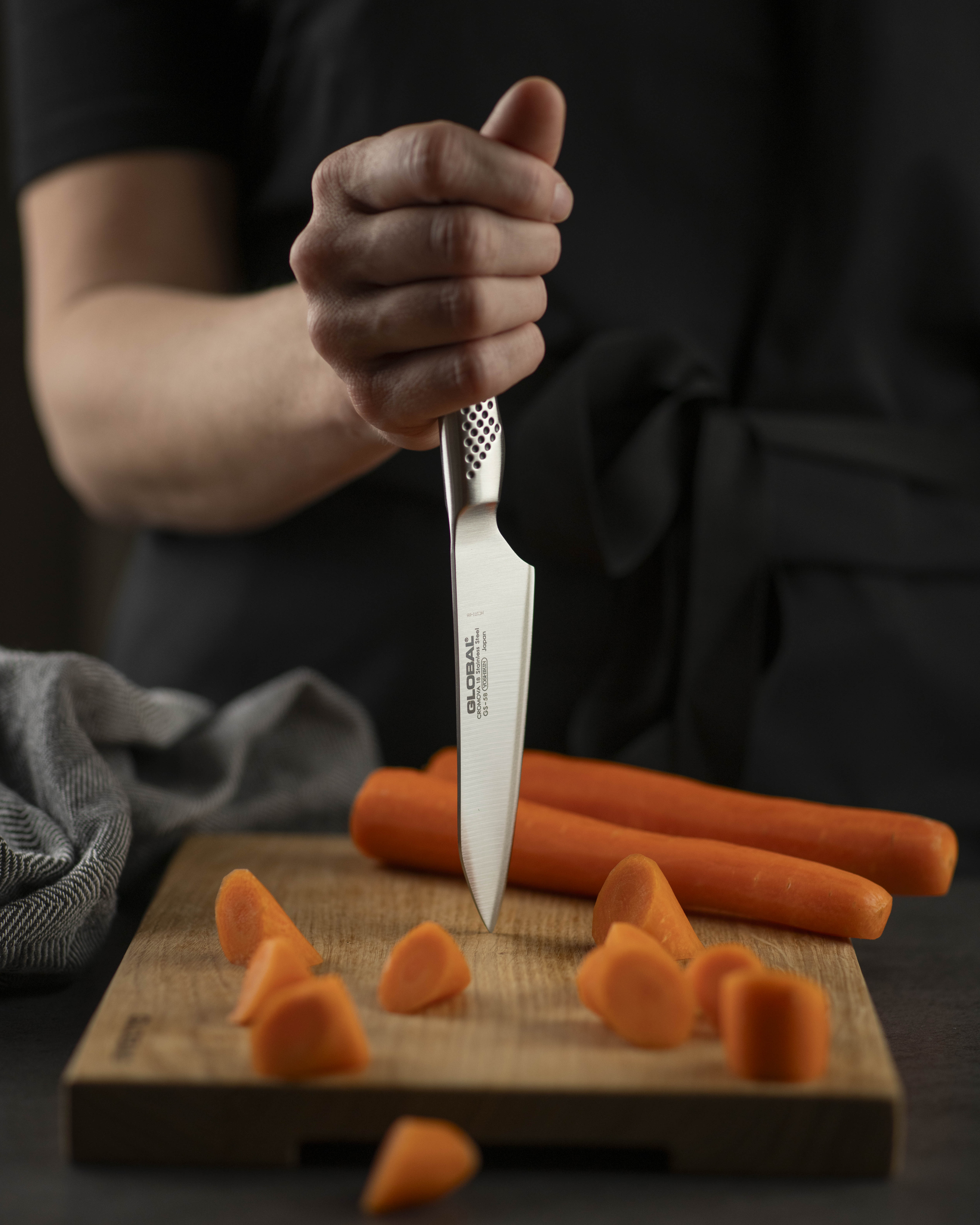 En fabriksny Globalkniv er ekstremt skarp. Præcis så skarp, som du ønsker, at en køkkenkniv skal være. Men for at din kniv kan fortsætte med at præstere på samme niveau, er der nogle ting, du skal være opmærksom på.