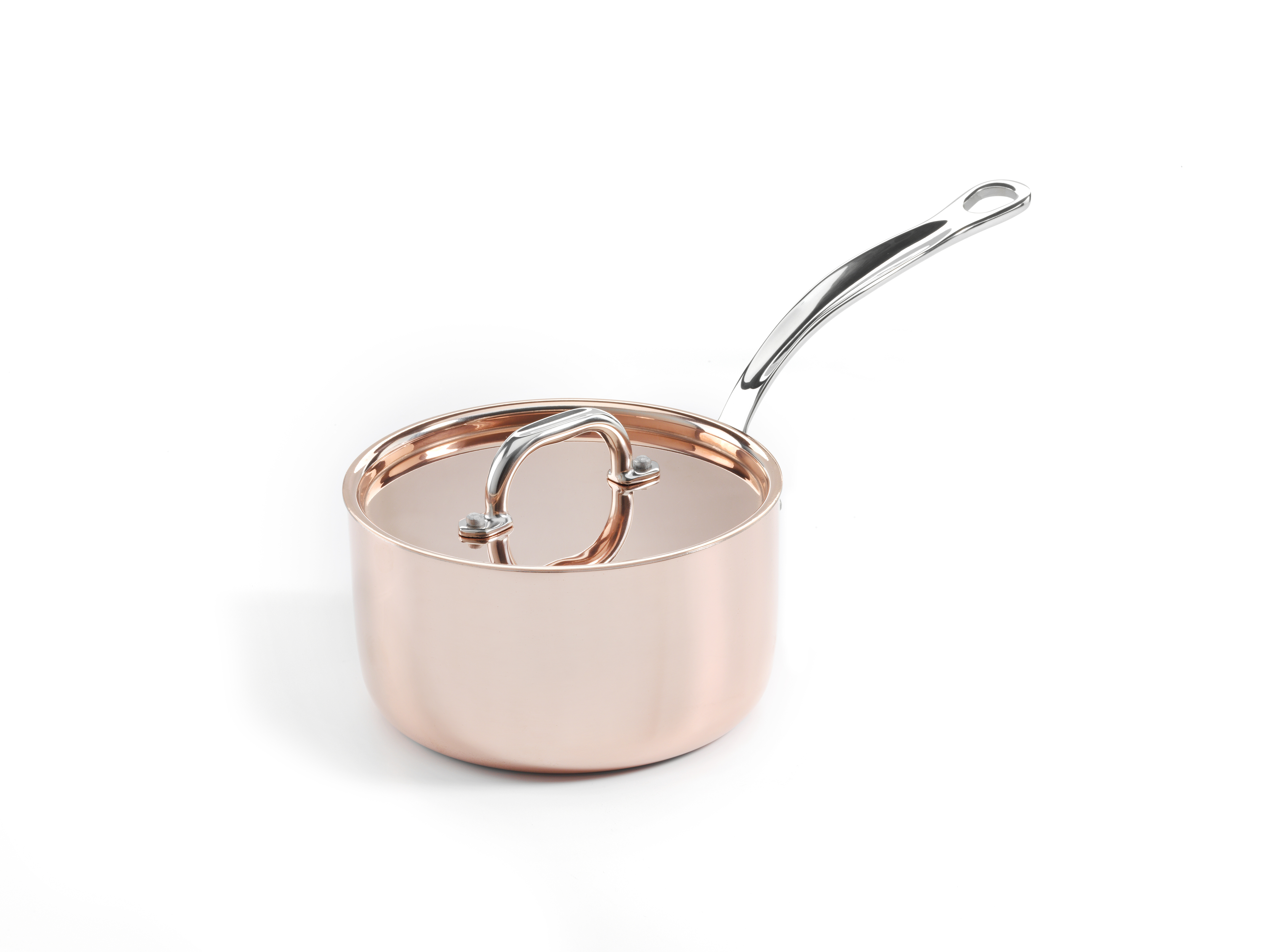 En kasserolle i rustfrit stål med en elegant, kobberbelagt yderside. Modellen er ideel til saucer og mindre kogninger. Kasserollen fungerer også fremragende til servering. Håndopvask anbefales.